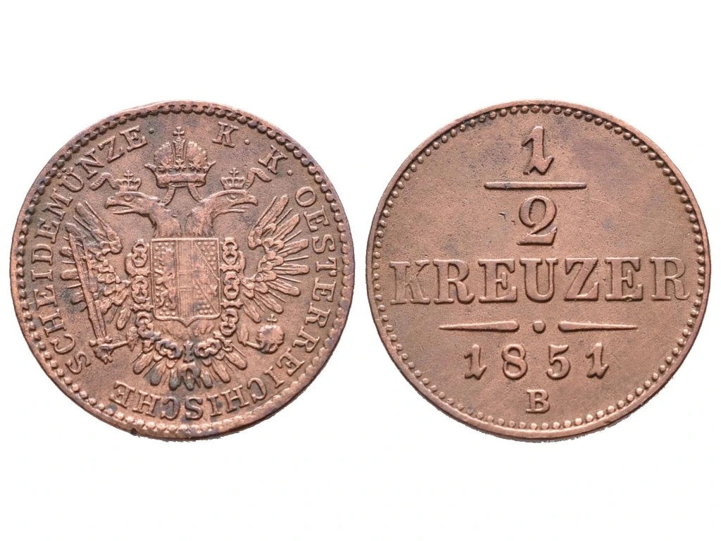 1/2 Krejcar 1851 B