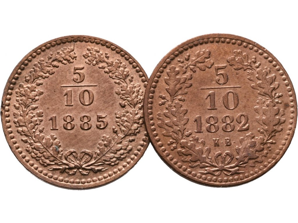 1/5 Krejcar 1882 KB a 1/5 Krejcar 1885 - lot 2 ks