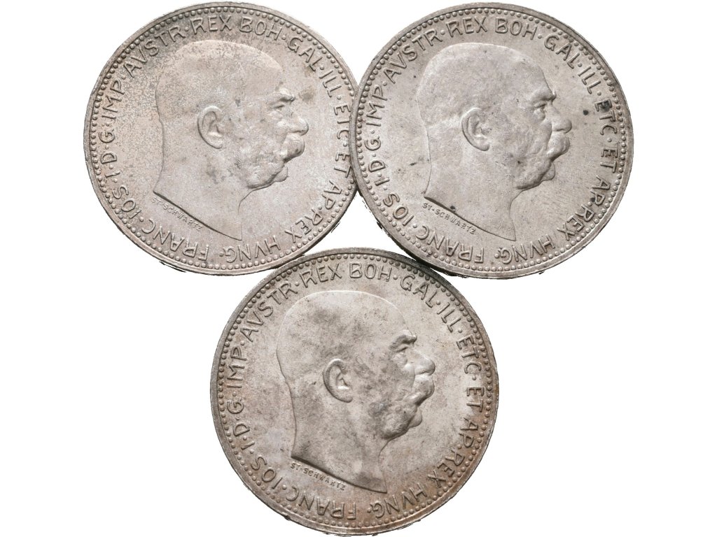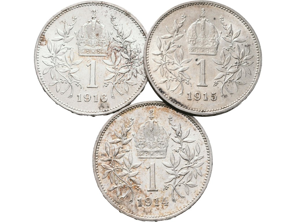 1 Koruna 1914,1915 a 1916, lot 3 kusů