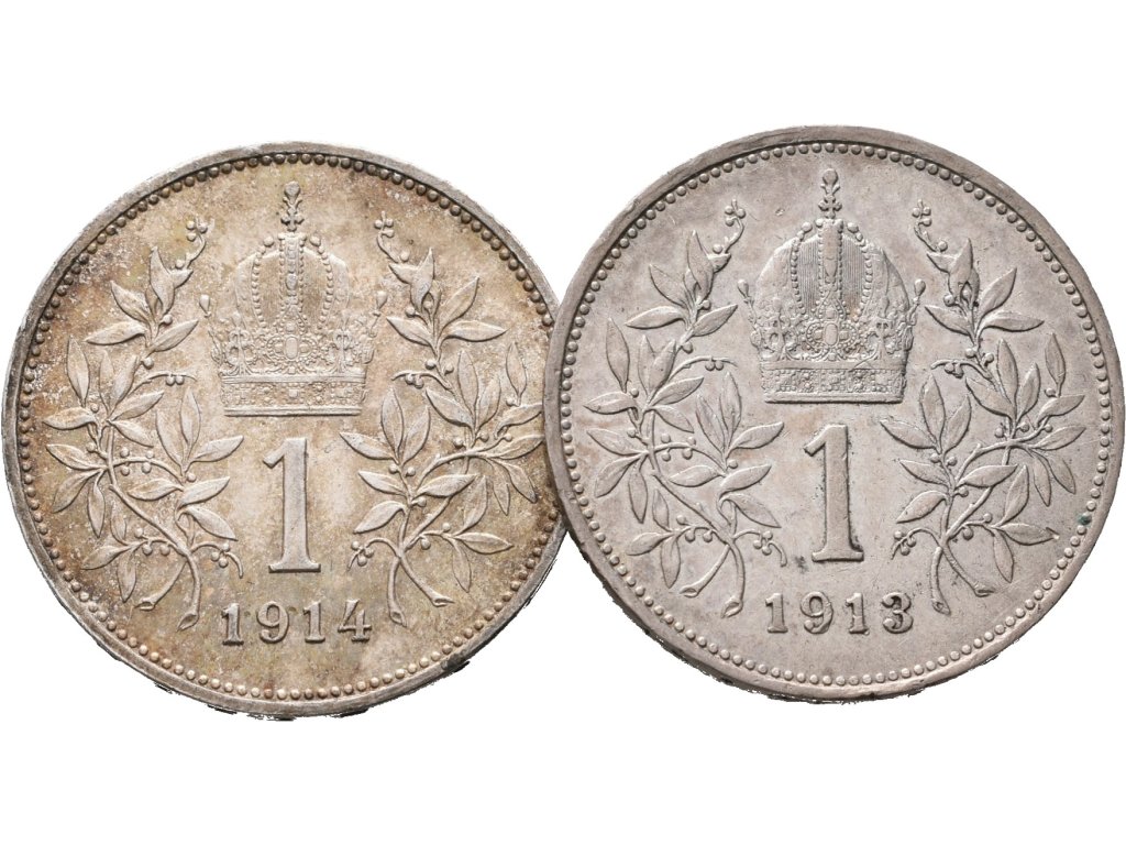 1 Koruna lot 2 kusů 1913 a 1914
