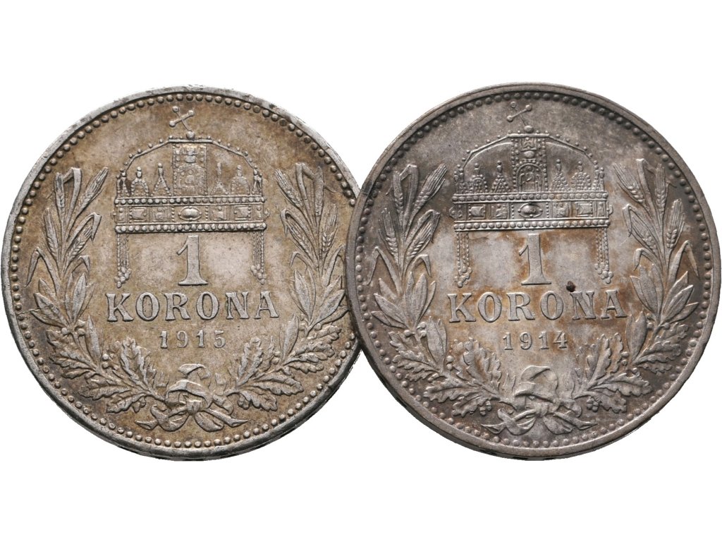 1 Koruna lot 2 kusů 1914 KB a 1915 KB