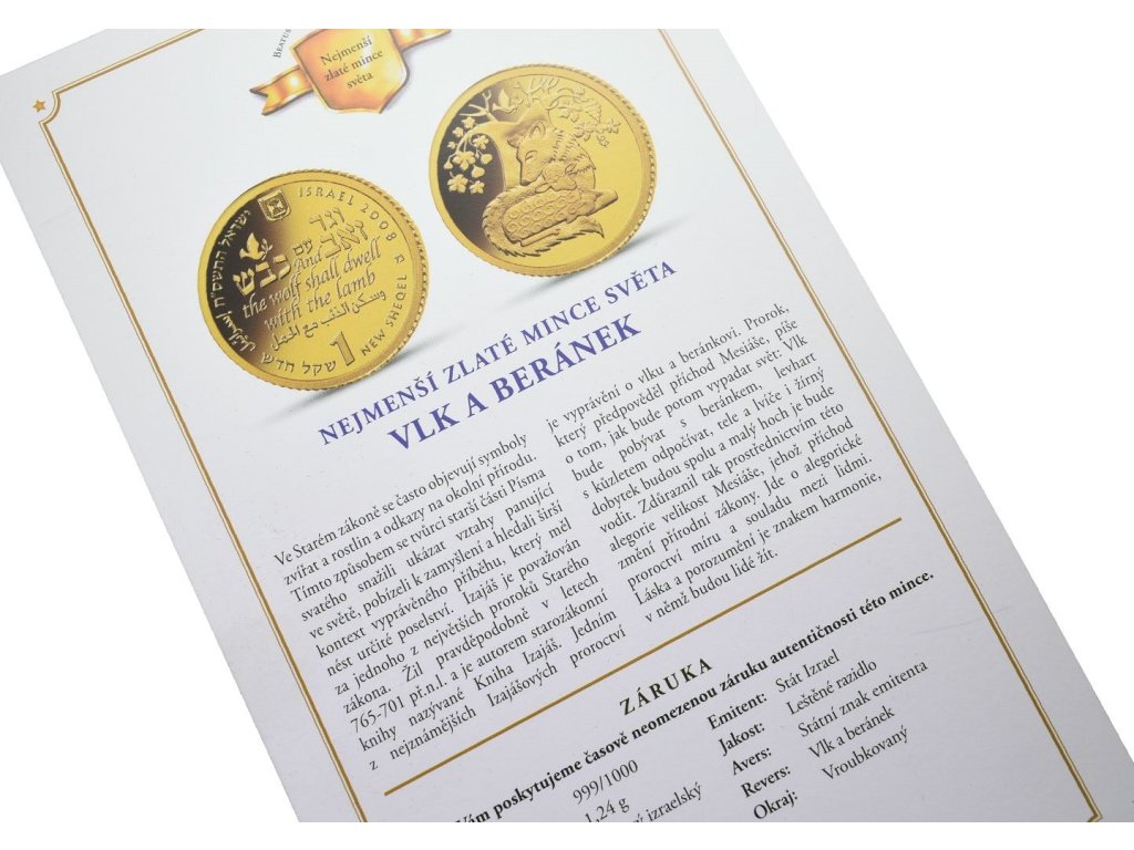 1 Nový izraelský šekel - 2008 - Au 1,24 g - 999/1000 - Vlk a beránek