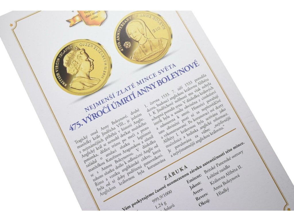 10 dolarů - 2011 - Au 1,24 g - 999.9/1000 - 475. výročí úmrtí Anny Boleynové