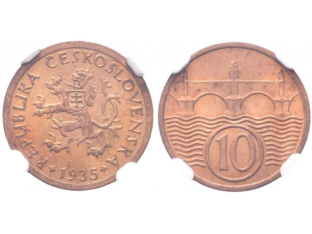 10 Haléř 1935, NGC MS 65 RB