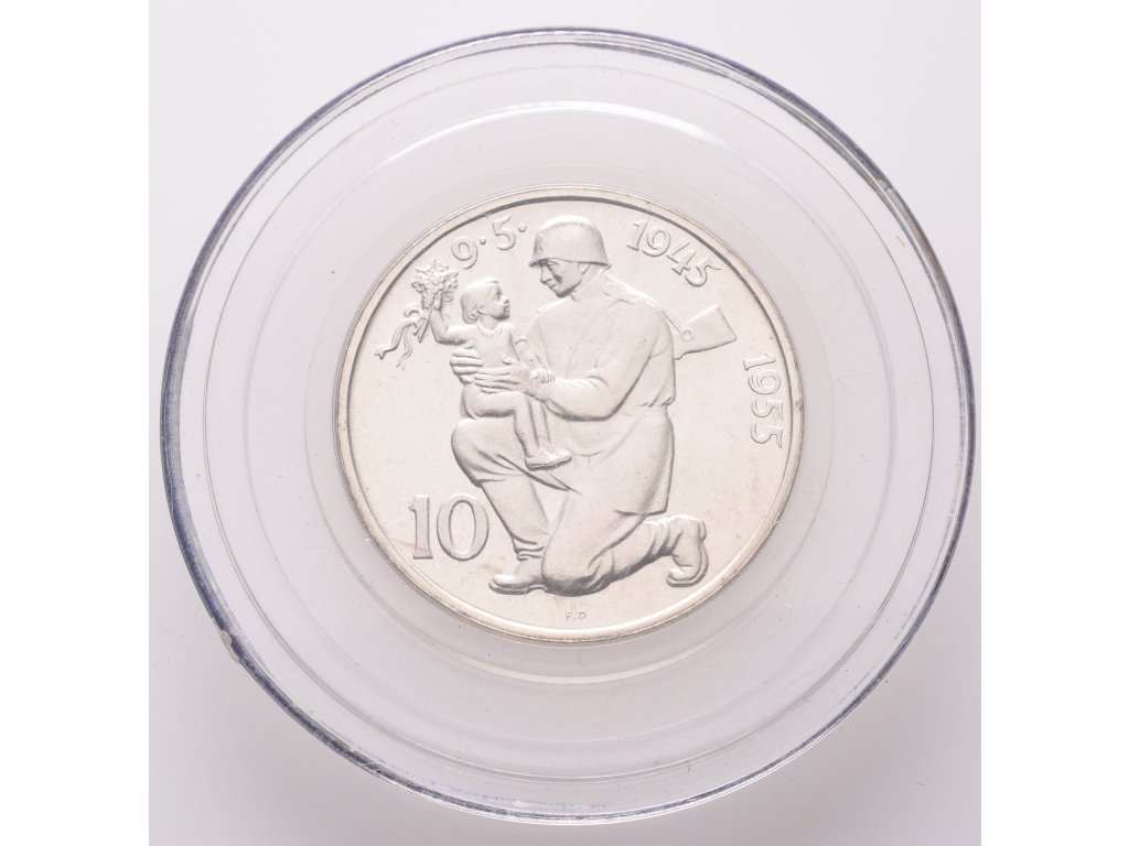 10 Kčs 1955 - 10. výročí osvobození Československa, PROOF, původní etue