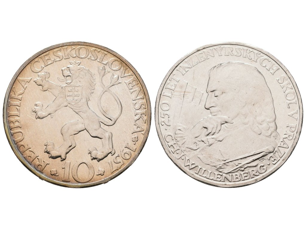 10 Kčs 1957 - Inženýrské školy v Praze, PROOF, původní etue