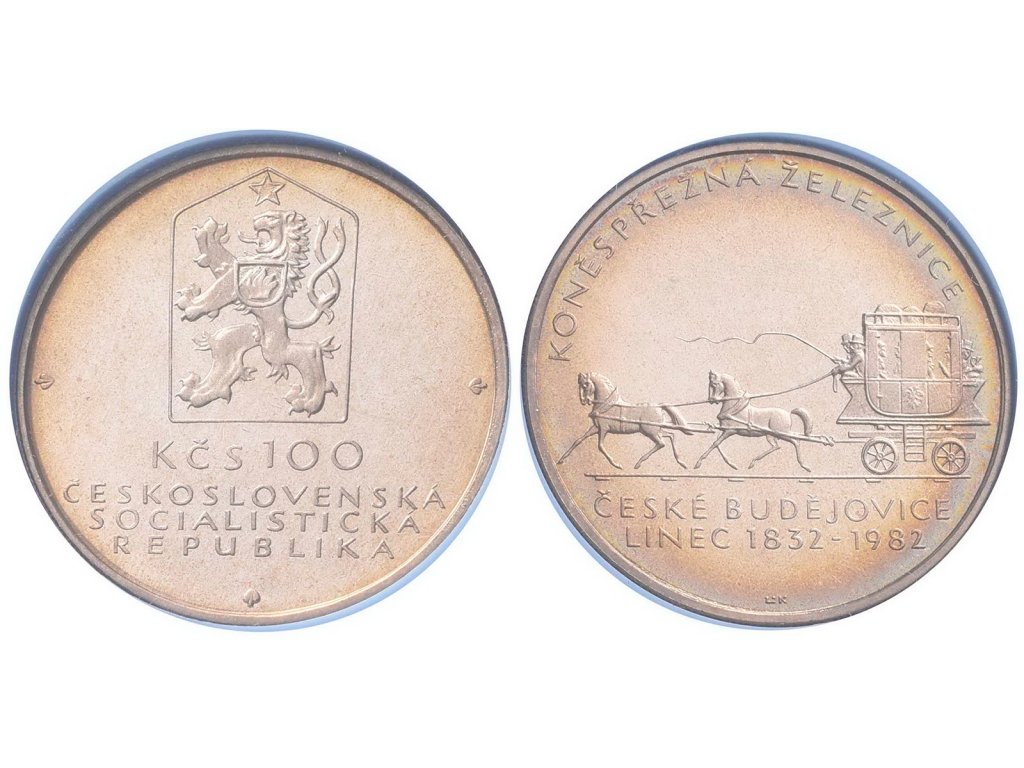100 Kčs 1982 - Koněspřežná železnice České Budějovice - Linec, PROOF