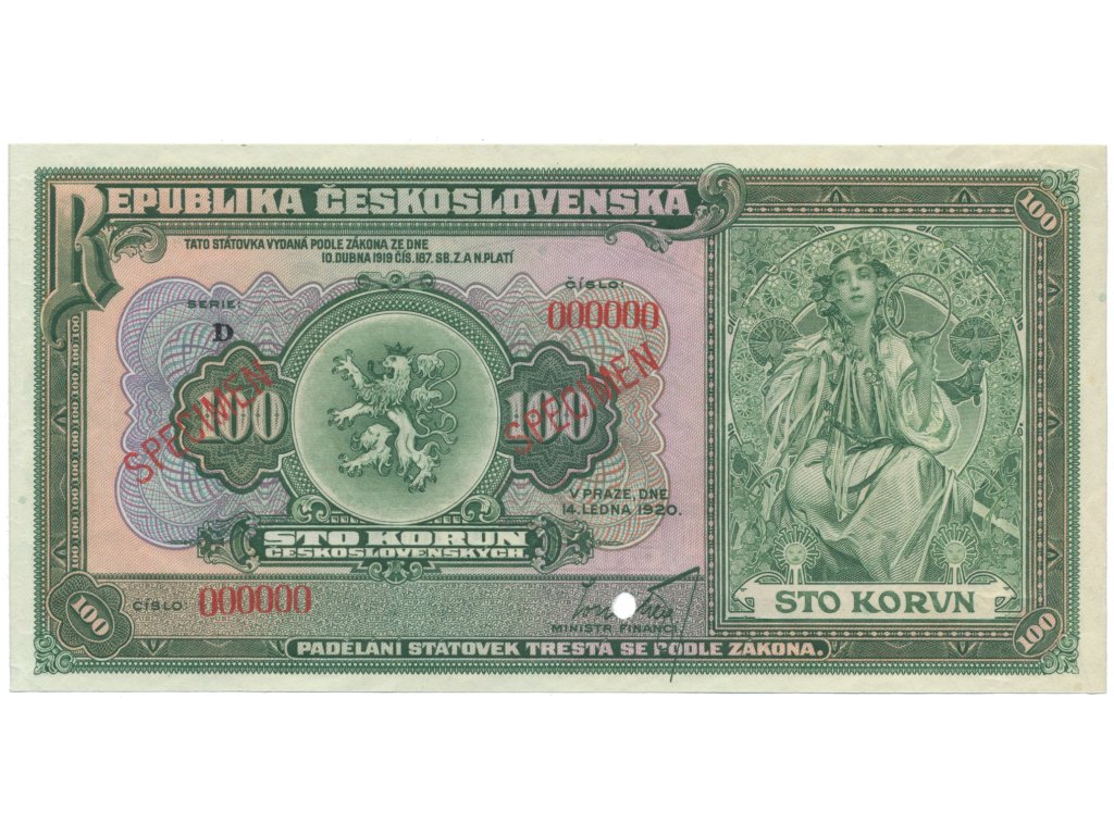 100 Koruna 1920, série D, anulát, Hej.16V1b