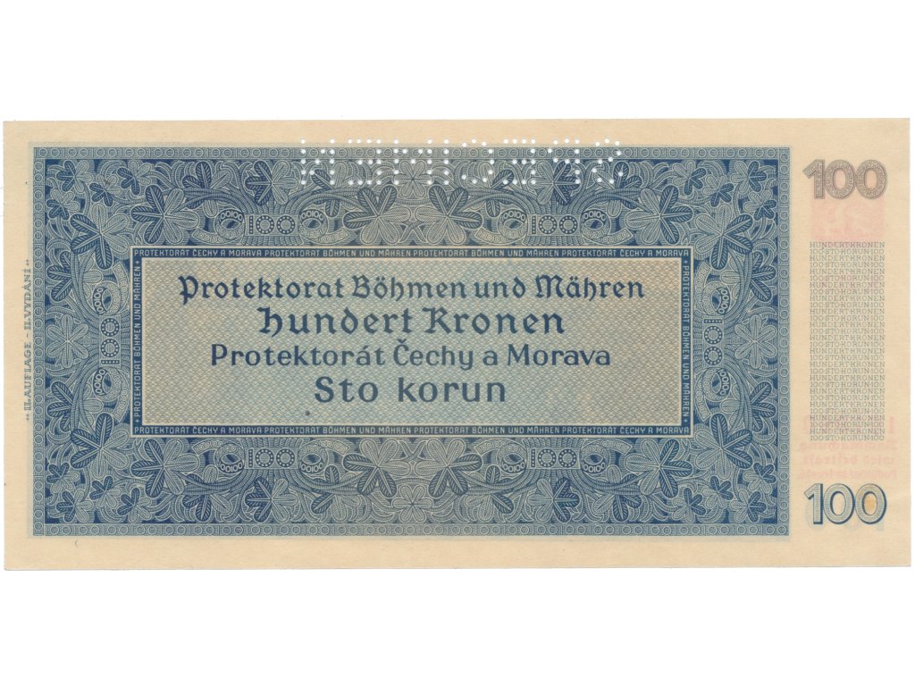 100 Koruna 1940, II. vydání, série A, SPECIMEN, Hej.33a.S1