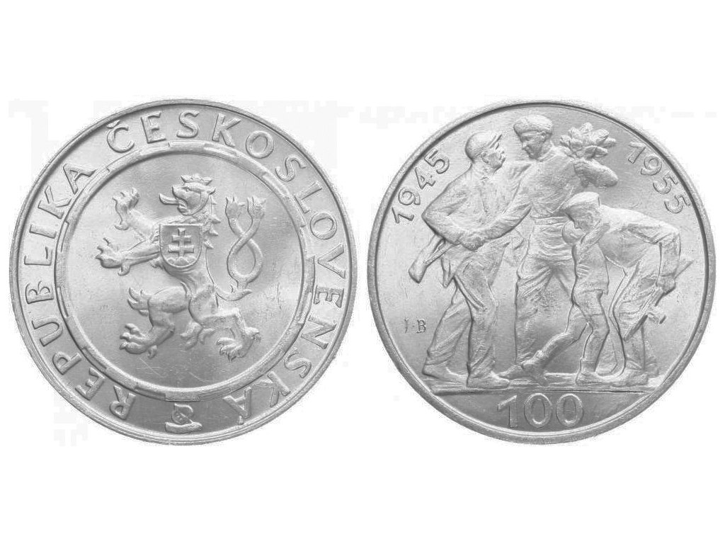 100 Kčs 1955 - 10. výročí osvobození Československa, var. A (ostré JB)