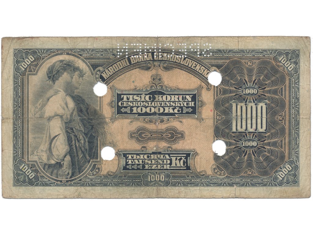 1000 Koruna 1932, série A, SPECIMEN + skatrační otvory, Hej.26a.S5