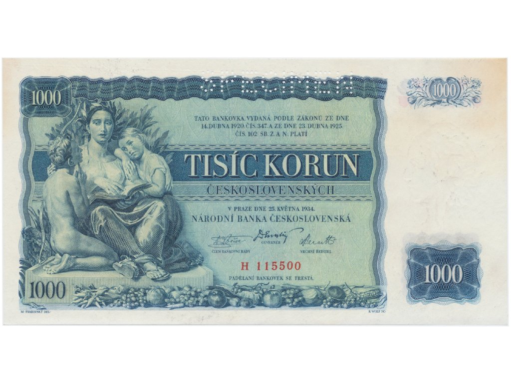 1000 Koruna 1934, SPECIMEN, Hej.27a.S1