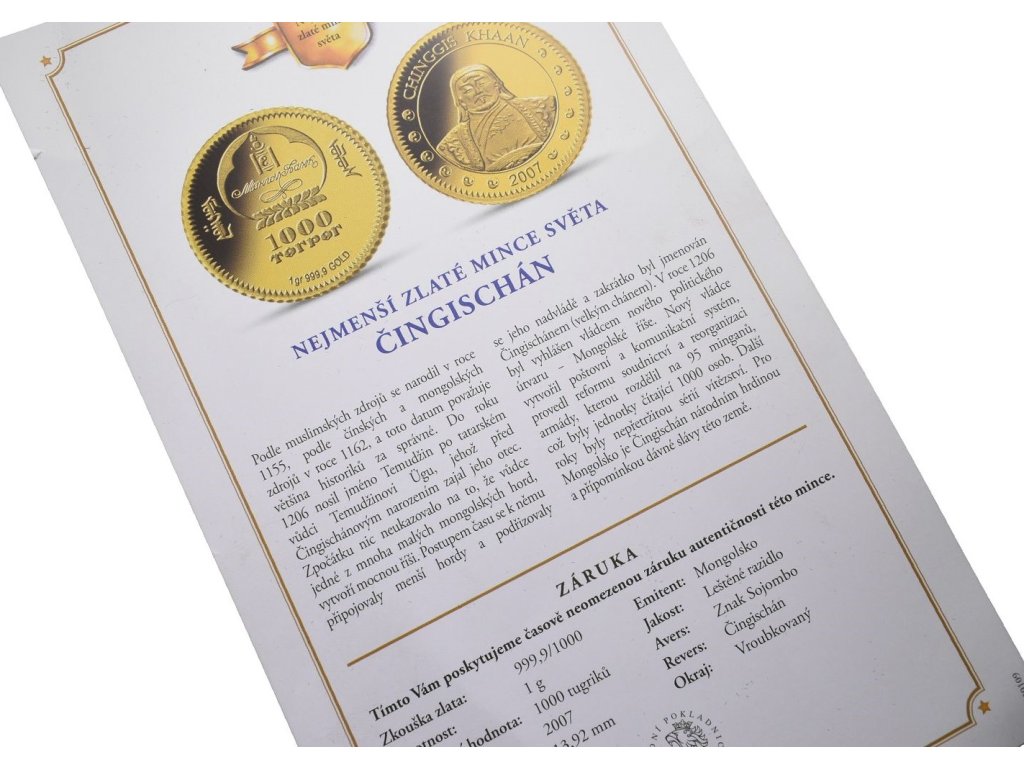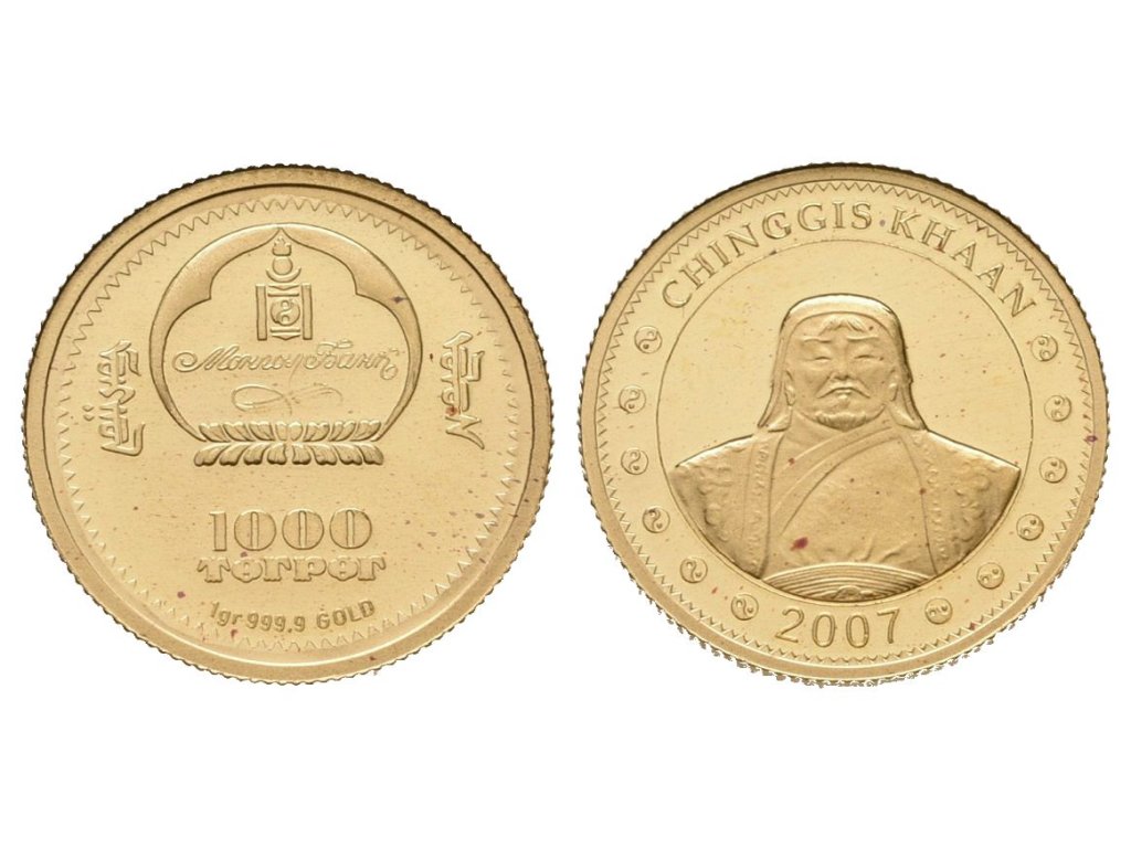 1000 tugriků - 2007 - Au 1,00 g - 999.9/1000 - Čingischán
