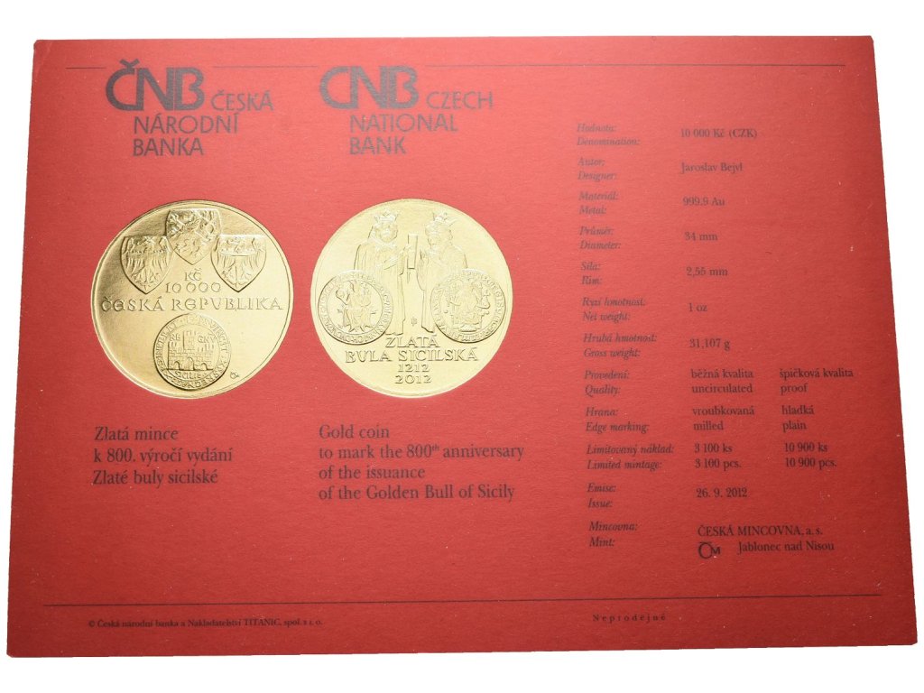10000 Kč 2012 - Zlatá bula sicilská, PROOF