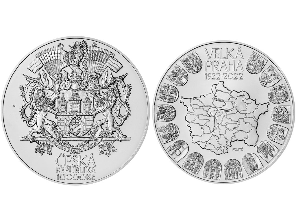 10000 Koruna 2022 - 100. výročí založení Velké Prahy, autor Zbyněk Fojtů, Aurea C511, etue, certifikát