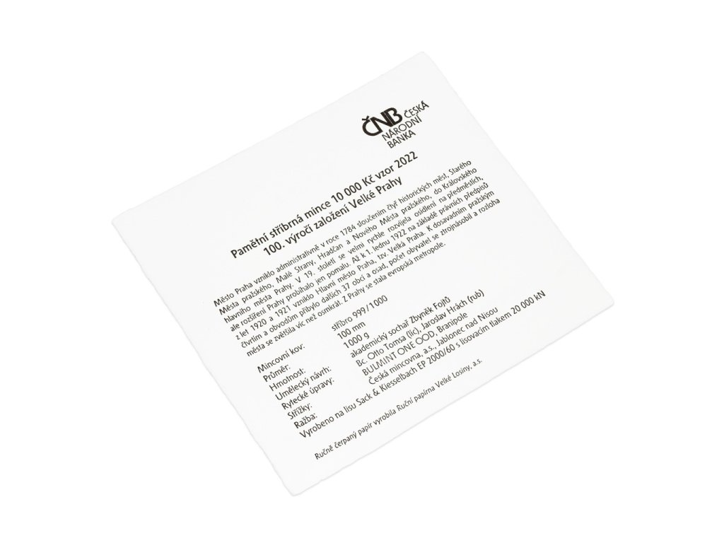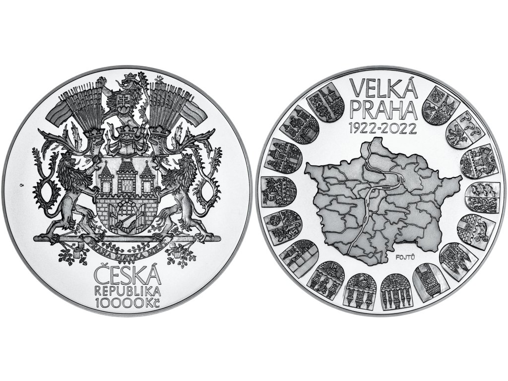 10000 Koruna 2022 - 100. výročí založení Velké Prahy, autor Zbyněk Fojtů, Aurea C511, etue, certifikát, PROOF