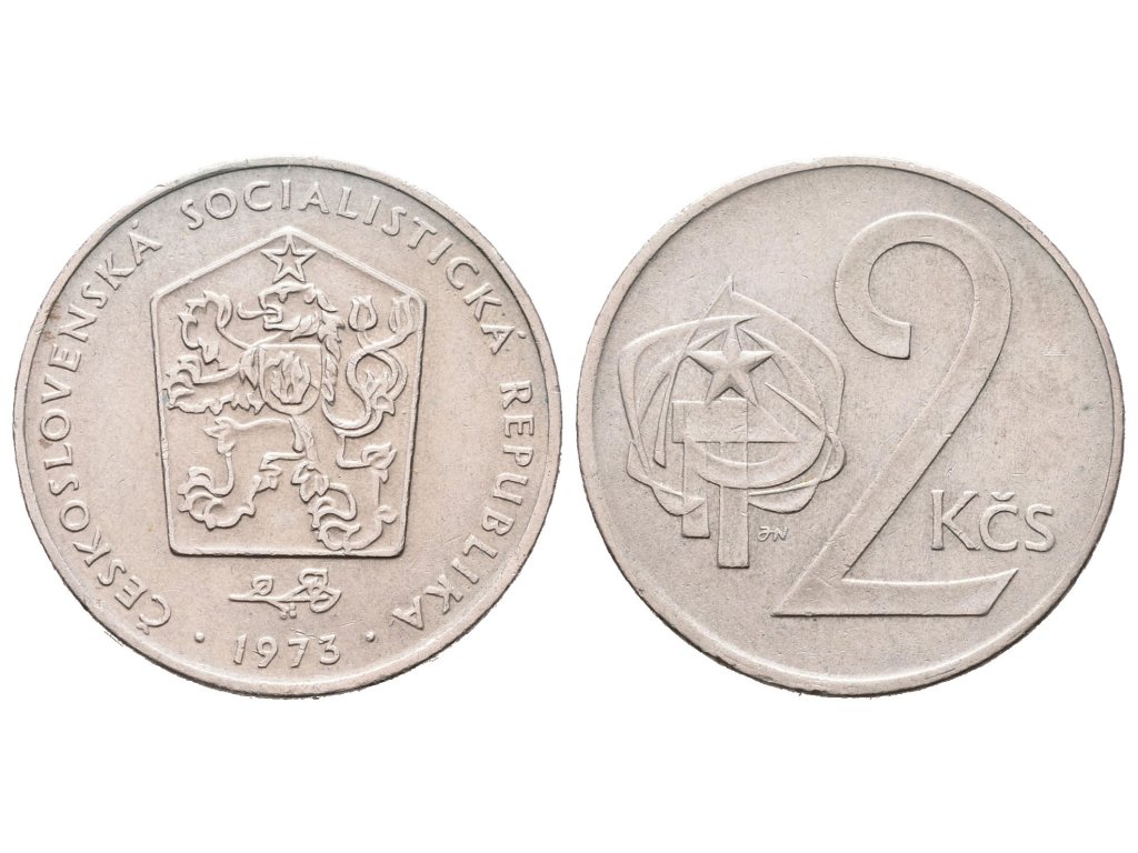 2 Koruna 1973 - varianta s vlnovkou na hraně