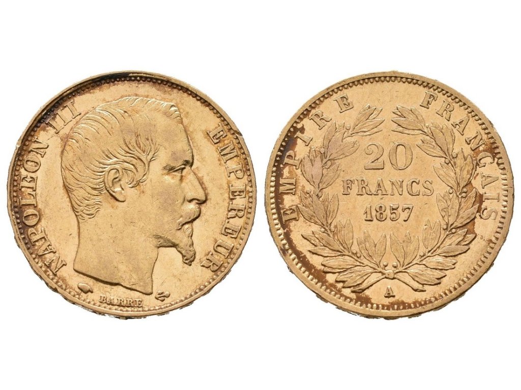 20 Frank 1857 A, Paříž, Au 0,900, 21,5 mm (6,4516 g)