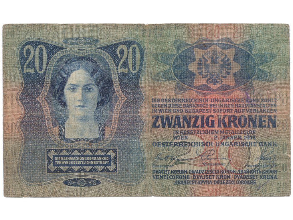 20 Koruna 1913 (1919), I. vydání, kolek padělaný, Hej.2