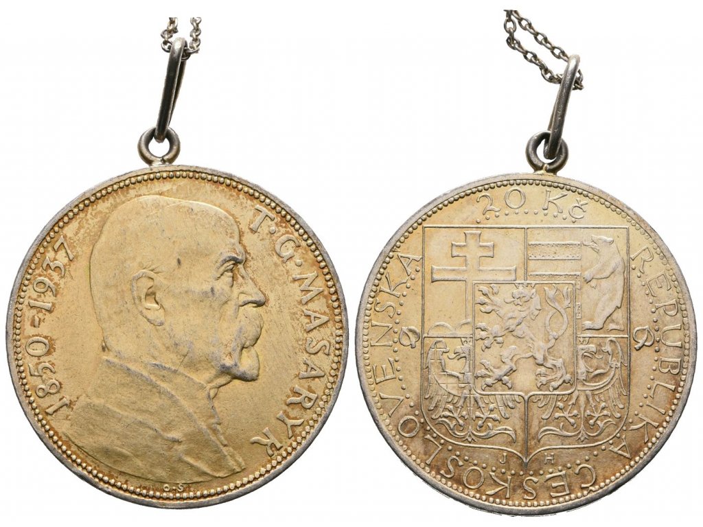 20 Koruna 1937 - T. G. Masaryk, záves, řetízek