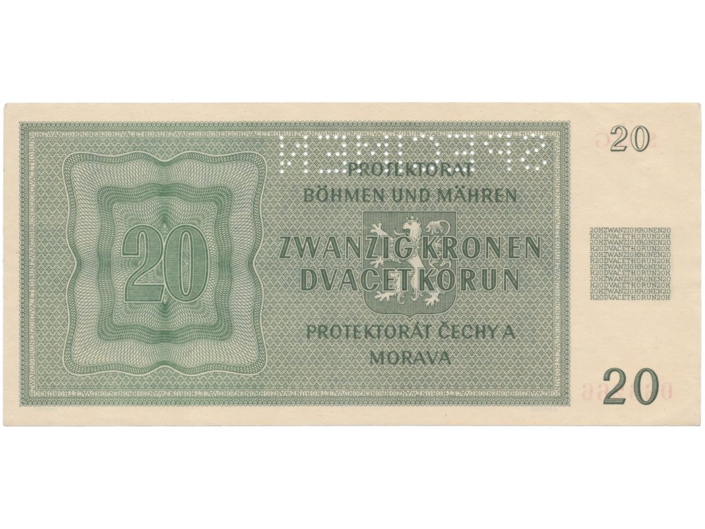 20 Koruna 1944, série G, SPECIMEN, Hej.40b.S1