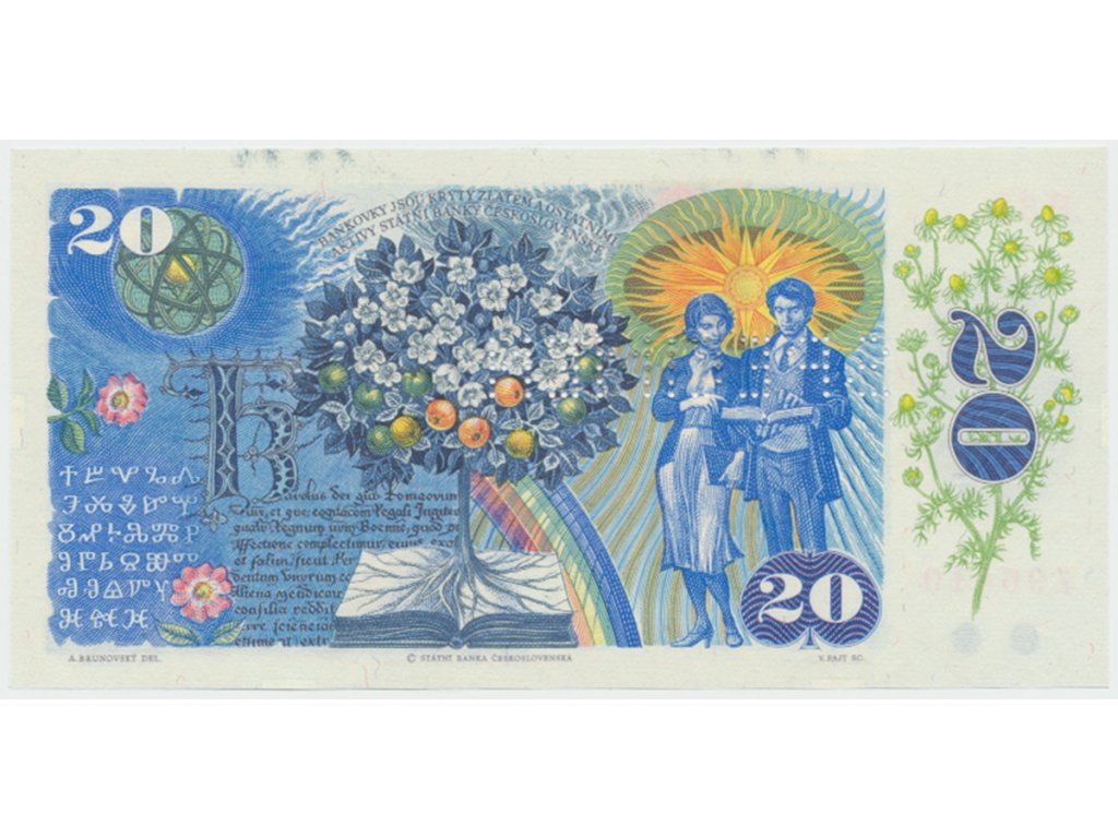 20 Koruna / 1988, kolkovaná 1993, série H 34, bankovní vzor, Hej.SK001aH.V1