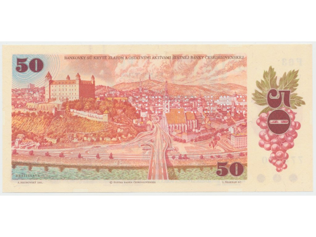 50 Koruna / 1987, kolkovaná 1993, série F 63, bankovní vzor, Hej.SK2bF.V1