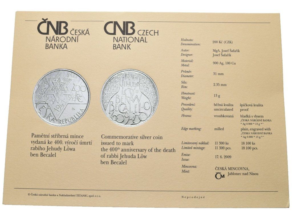 200 Kč 2009 - Rabi Jehuda Löw ben Becalel