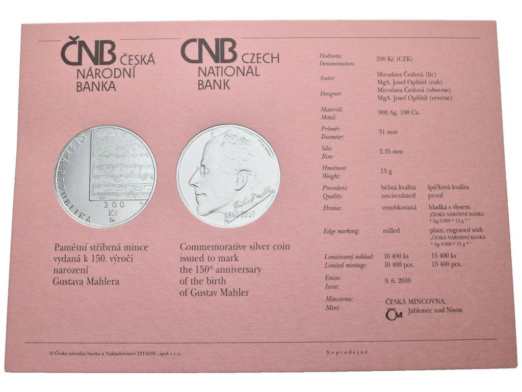 200 Kč 2010 - Gustav Mahler
