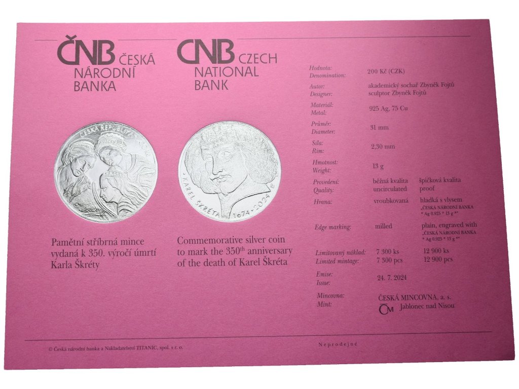 200 Kč 2024 - Karel Škréta, PROOF