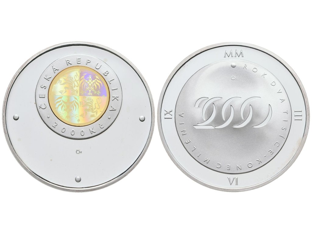 2000 Kč 2000 - Rok dva tisíce - konec milénia, PROOF - leštěné averzní pole