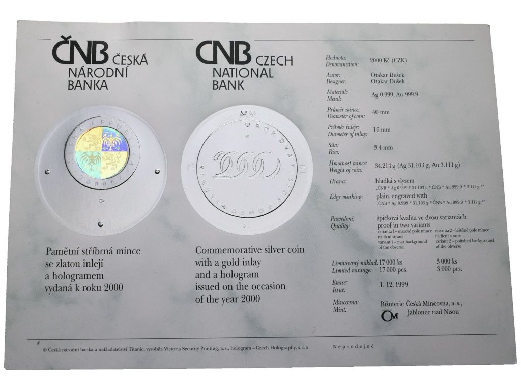 2000 Kč 2000 - Rok dva tisíce - konec milénia, PROOF/BK
