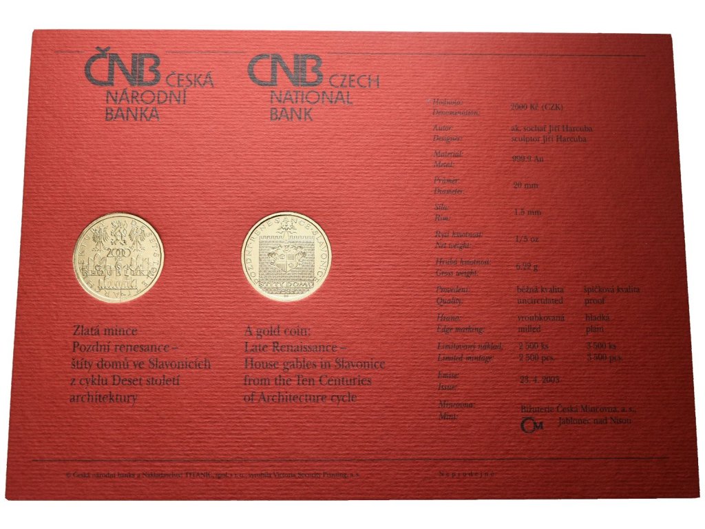 2000 Kč 2003 - Pozdní renesance - Štíty domu ve Slavonicích, PROOF