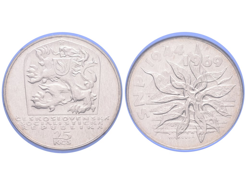25 Kčs 1969 - 25. výročí SNP, PROOF, původní krychlová etue
