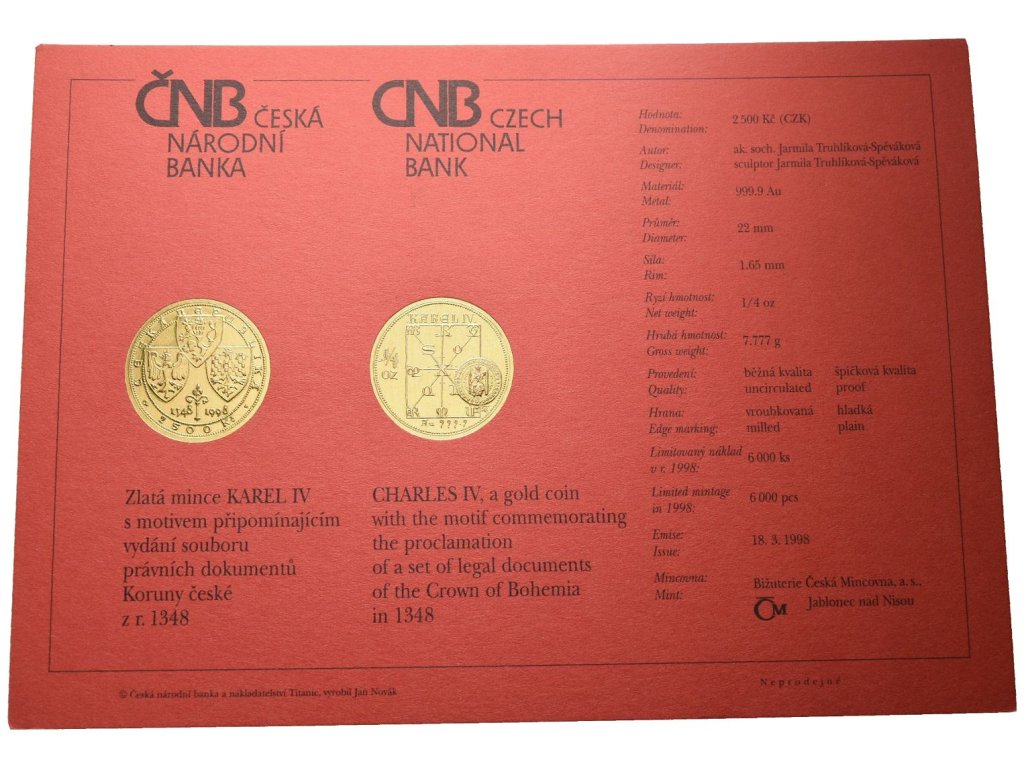 2500 Kč 1998 - Karel IV. - Právní dokumenty Koruny České