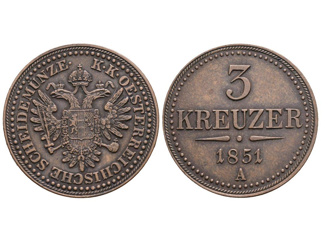 3 Krejcar 1851 A - šroubovací