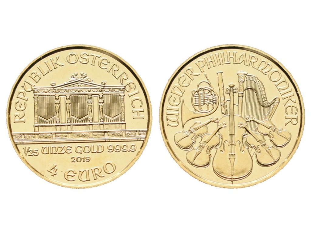 Rakousko, 4 Euro 2019 - Vídeňská filharmonie, Au 0,9999 (1,24 g), 1/25 OZ