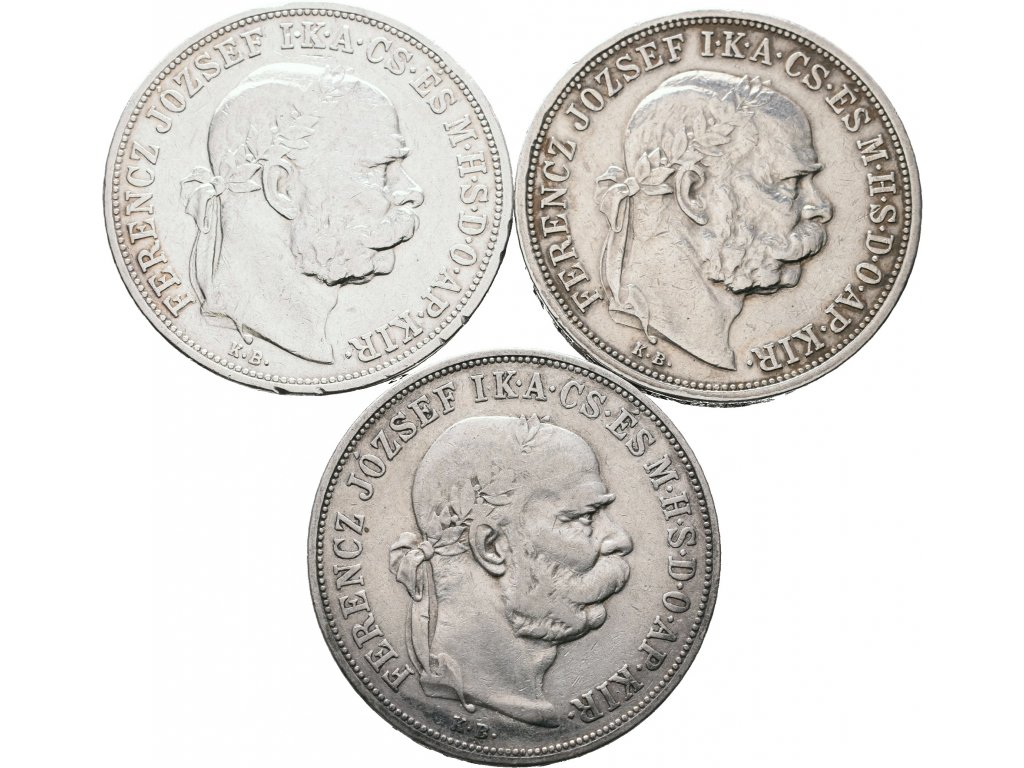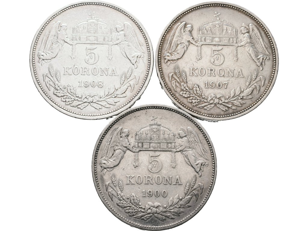 5 Koruna 1900 KB, 1907 KB, 1908 KB - lot 3 ks