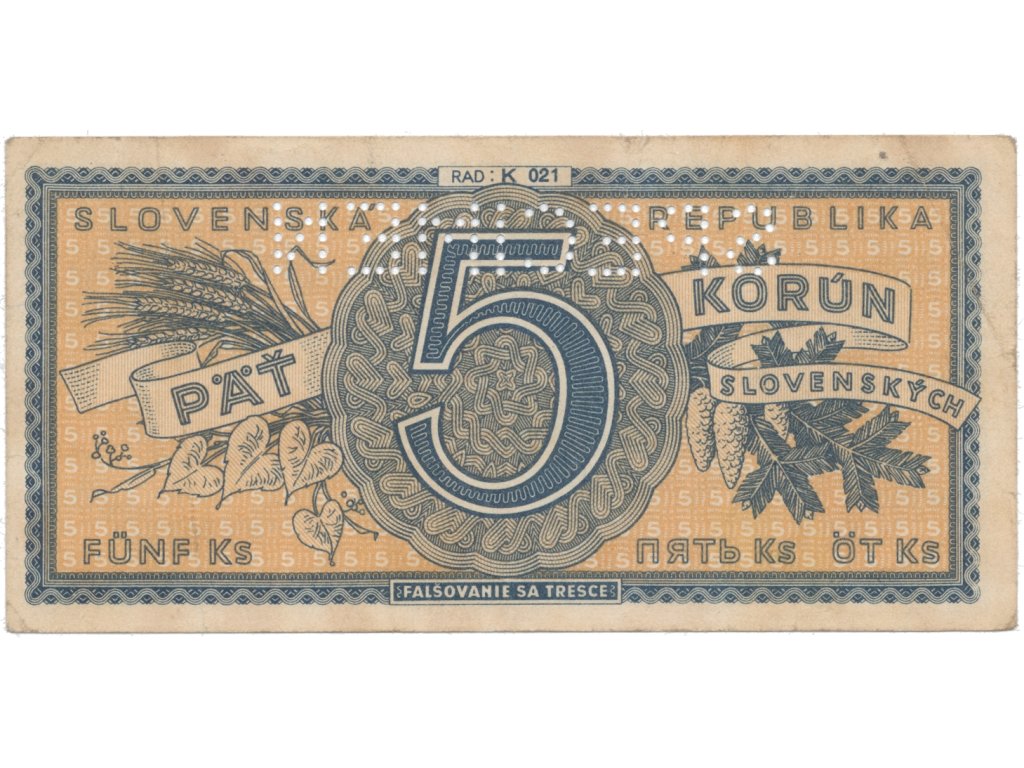 5 Koruna b.d. (1945), série K 021, Hej.55a.S1