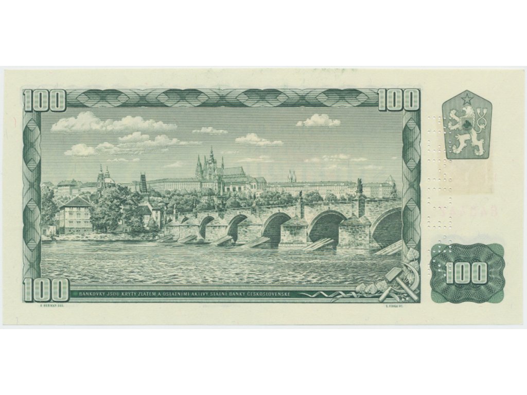 100 Koruna / 1961, kolkovaná 1993, série G 79, bankovní vzor, Hej.SK4bG.V1