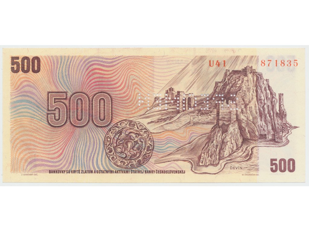 500 Koruna / 1973, kolkovaná 1993, série U 41, bankovní vzor, Hej.SK5aU.V1