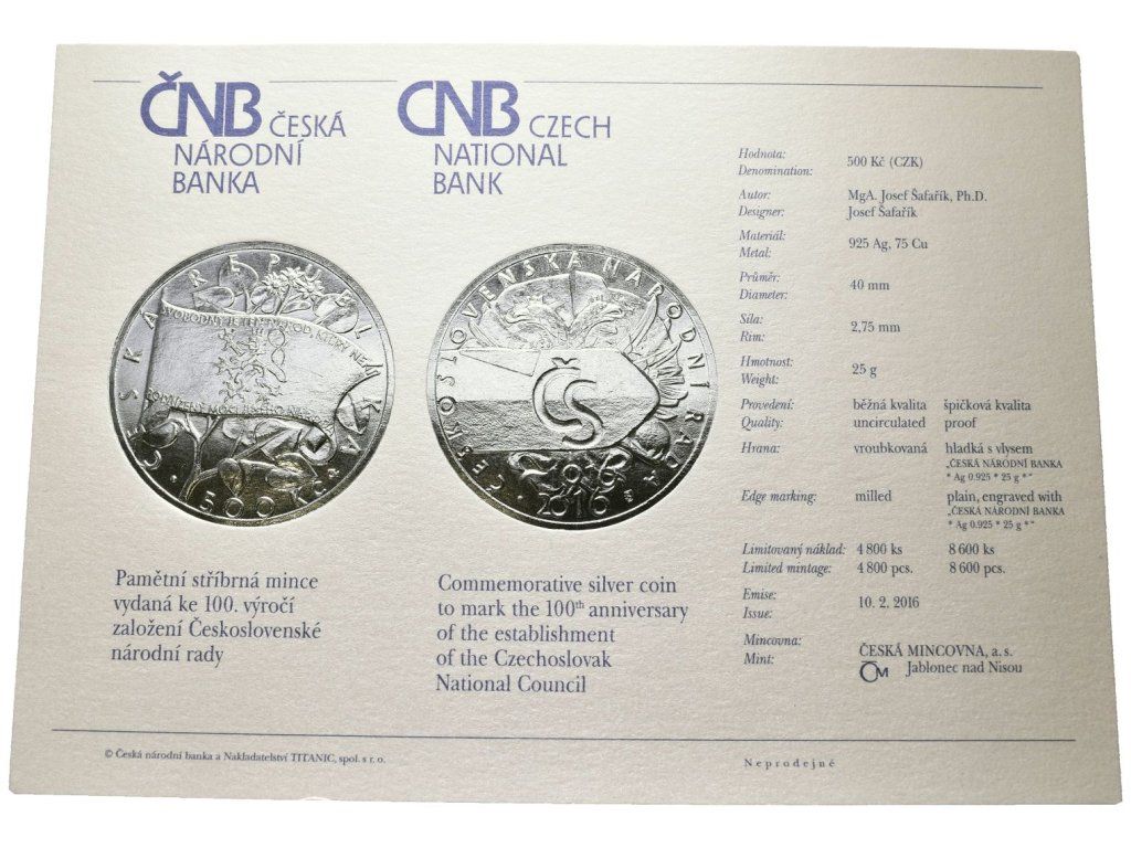 500 Kč 2016 - Čs. národní rada, PROOF