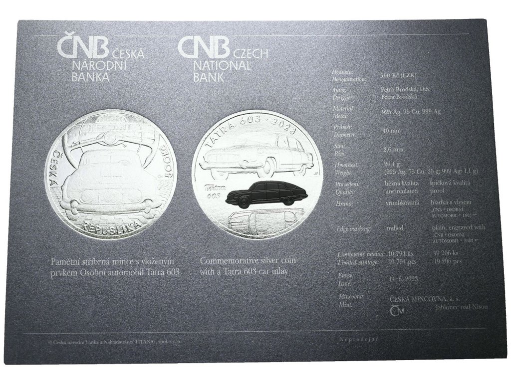 500 Kč 2023 - Osobní automobil Tatra 603, PROOF