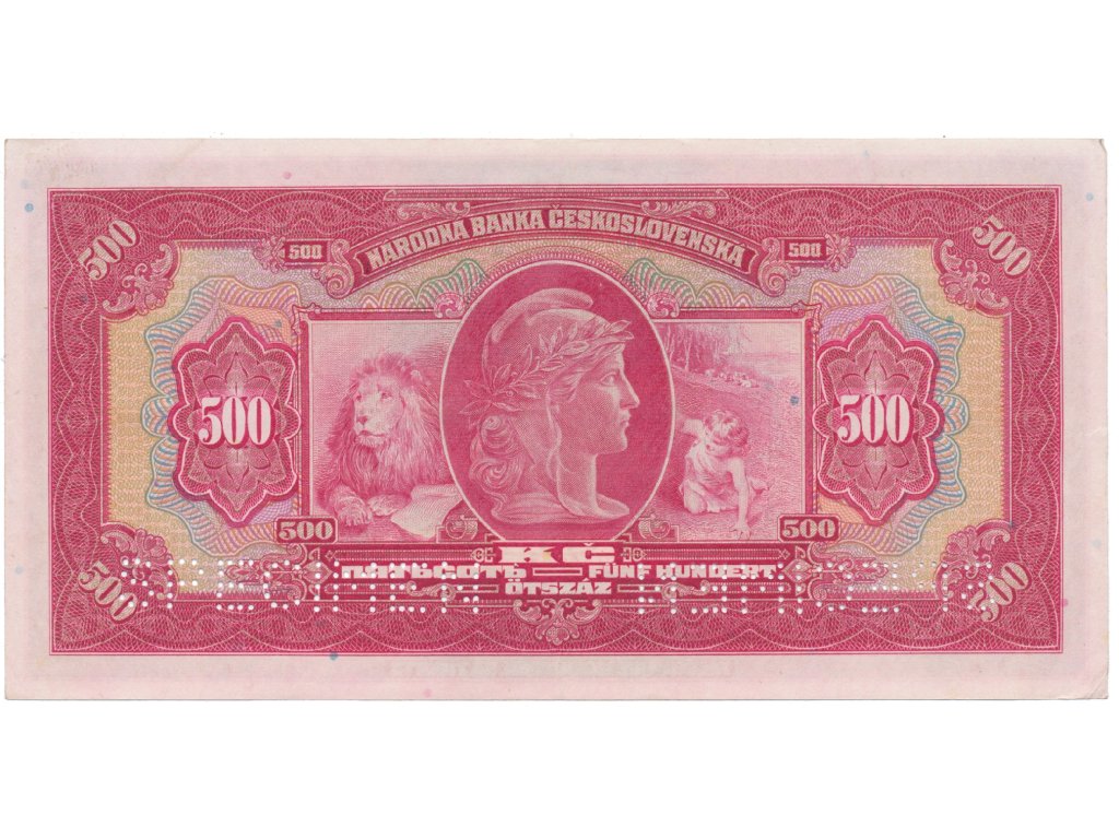 500 Koruna 1929/1939 + přetisk, série G, 2x SPECIMEN, Hej.44a.S2