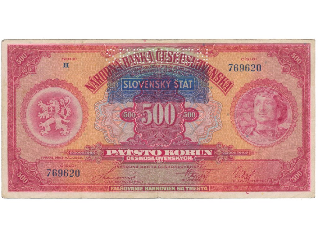 500 Koruna 1929/1939 + přetisk, série H, SPECIMEN, Hej.44a.S1