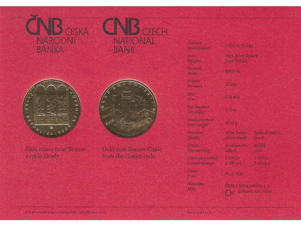 5000 Kč 2017 - Hrad Bouzov, PROOF