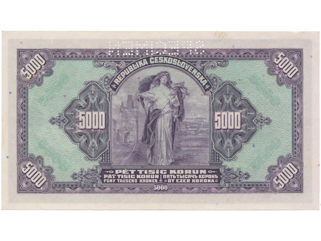 5000 Koruna 1920 (přetisk 1943), série C, SPECIMEN, Hej.N1