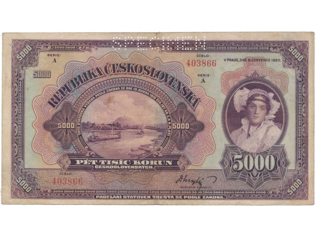 5000 Koruna 1920, série A, SPECIMEN, Hej.17a.S1