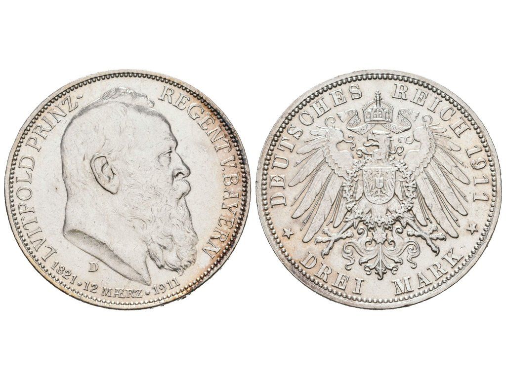 Bavorsko, 3 Marka 1911 D - 90. výročí narození