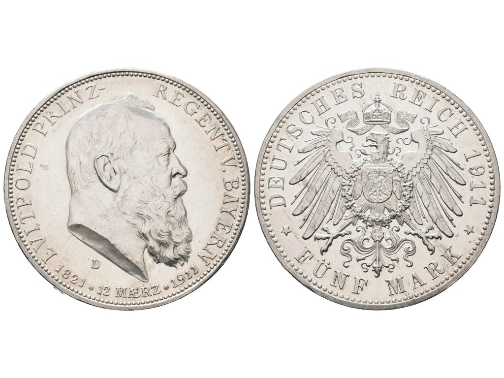 Bavorsko, 5 Marka 1911 D - 90. výročí narození
